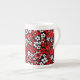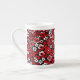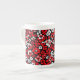 Floral pattern of small red and white flowers on a black background Bone China Coffee Mug.