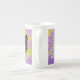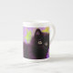 Bone China Mug apresentando um gatinho preto Gustav Klimt! Esta beleza de olhos largos se coloca num campo verde de flores roxas. Um presente pensativo para amantes de gatos e entusiastas de arte austríacos!