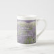 Bone china mug for your coffee or tea that features the wrap-around photo image of a lovely Lavender herb garden along with the inspirational words of the Serenity Prayer printed in white, stylized writing on one side only. A lovely, floral design! Makes a great gift for family and friends.