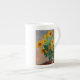 Bone China Mug, com o Buquê de pintura de óleo de Girassóis de Claude Monet (1881). Lindos girassóis num vaso azul sobre uma mesa vermelha. Um presente de excelente para fãs do impressionismo e da arte francesa.