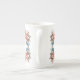 Mágula branca de porcelana Elegante, com gráficos de arranjos florais coloridos e um monograma com solteiro, na frente. O pote de chá correspondente está disponível.