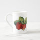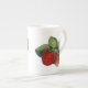 Uma imagem bonito do vintage de duas morangos unidas a suas folhas. Uma das morangos inteiramente é amadurecido e é um vermelho mais escuro, com outro não distante atrás.