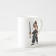 uma figura de ação da mãe Ninja em sua posição de batalha, confiante e feliz, ela tem cabelos castanhos puxados para cima em um rabo de cavalo, ela está vestindo chinelos e óculos, segurando uma espada de samurai em sua mão, e segurando sua bebê sorridente em sua anca com a outra mão, no estilo de uma charge