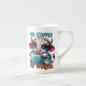 A funny and sarcastic design features a cute highland cow sitting with a steaming coffee mug that has a lipstick kiss mark on the front. The cow, with big blue eyes, glasses, and a soft expression, has black and white fur. Bright, colorful text reads: "No coffee, no workie." This playful design is available on various products, making perfect gifts for coffee lovers.