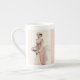 Uma caneca bonita do chá da porcelana de osso de uma gravura de Jane Austen e de uma lista de suas novelas e um bonito na placa de forma cor-de-rosa da regência. Aperfeiçoe para o amante de Janeite ou de Austen.