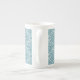 Uma Mug de Café Chinesa Chic, com um padrão tradicional de Ogee, ao estilo étnico, em Teal, em um Fundo Branco, que você pode mudar se quiser. Parte da coleção Posh & Painterly 'Boho Bazaar', este padrão pode ser facilmente personalizado alterando a direção ou a escala do azulejo padrão para um aspecto completamente diferente.