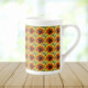 Desfrute de uma xícara de café, chá ou chocolate quente nesta bonito caneca de porcelana que apresenta uma foto de enrolar de um girassol amarelo e bronze colorido e impresso em um padrão repetitivo. Um design floral adorável!