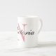 Nome personalizado monograma da porcelana Bone China Mug. Adicione seu próprio nome ou texto. Xícara elegante para homens e mulheres. Aniversário clássico ou ideia de presente de Natal para ele ou para ela. Faça um para amigos, família, colega de trabalho, chefe, amante do café, mãe, pai, funcionário, professor, treinador etc. Cores personalizáveis. Bem feito para casa ou escritório. modelo de tipografia Na moda. Uso para chá, café, sopa e muito mais