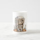 Problema de Tombside - Múmia Mischefe e Mini Monstros Ossos Ossos da China Mug Uma múmia de olhos largos com uma face esquelética senta-se em dentro de um túmulo de pedra, uma mão apontando para fora no desafio lúdico. Flandres por duas lanternas entalhadas e minúsculas companheiras de esqueleto, a cena é moldada por pedras gravosas e folhas de outono dispersas. O design combina o charme assustador com um maldito cartunista, capturando o espírito do Halloween através de um personagem ousado, detalhes inquietantes e um piscar os olhos do inesperado.
