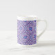 Um bonito Chá-China Óssea ou Mug de Café, com um padrão de formas tradicionais de óculos em tons de Roxo, Chá, Azul-Azul e Branco.