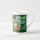 Bone China Mug apresentando uma foto de bolota marrom e folhas verdes banhadas à luz do sol. Traga a beleza da natureza para a sua vida, adicione um toque de verde à decoração da sua cozinha. Pode eliminar o texto "Bom dia da floresta" ou substituí-lo pela sua própria mensagem (clique em "Personalizar esta modelo"). Para mais modificações (estilo de fonte, cor de fonte, posição de texto), clique em "Editar design".