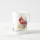 Modernos Cardeais Reds and Browns Bone China Cup, uma bela caneca chinesa óssea apresentando um Design cativante de um Cardeal masculino e feminino. As duas aves graciosamente tocadas, viradas umas para as outras, a sua plumagem vermelha e castanha macia brilhante criando um contraste impressionante. O olhar gentil deles e as linhas elegantes de design exudem um sentimento de amor e conexão, fazer esta Copa Bone Chins Adição Perfeita à sua coleção e adorável companheira para seu café ou chá. Artista Tanya Arseneau Nanniesfineart