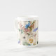 Caneca De Porcelana Rosas, anêmonas, orquídeas em faixas cremosas.