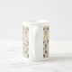 Small blue and white floral pattern bone china mug featuring small blue and white flowers on a neutral beige background.