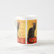 Uma caneca clássica encantador de China de osso de Nouveau da arte que caracteriza uma arte do poster para a taberna Le Conversa Noir, pintada pelo pintor de Nouveau da arte do Suíço-nascer e pelo printmaker franceses Théophile Alexandre Steinlen.