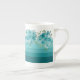 Caneca De Porcelana Turquesa Azul Flores Selvagens Arte Aquosa