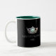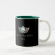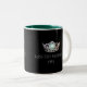 Uma coroa de prata brilhando com um impressão do destaque do verde esmeralda poised a parte dianteira e o centro em cada lado desta caneca do café/cacau. Mostrado em uma caneca preta & branca com um profundo - texto cinzento interior e coordenando verde. Personalize seu interior e personalize o texto da amostra ao seus próprios. Mostrado como a senhorita Des Moines 1982.
