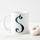 Caligrafia da letra S em uma caneca básica com acentos azuis