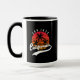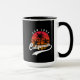 Caneca de San Jose com um design que apresenta um pôr do sol retrô. Este design também tem Califórnia em uma fonte manuscrita com um glifo de cauda swash para aquele visual retrô elegante. Esta caneca é apenas para você se você é de San Jose ou para dar como um presente ou lembrança.