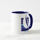 Nossos do "azuis barco esquadram" características da caneca da campainha de Nantucket um design simples, elegante do veleiro, suportado com uma gradação graciosa de matiz oceano-azuis. Você pode igualmente adaptar o design a todo o estilo que da caneca você desejar. Apenas o clique "personaliza-o," e você parte! Positivo você pode adicionar um nome ou todo o texto que você quiser ao lado vazio.