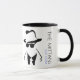 Caneca de café branco, punho preto com logotipo de TheMittani.com e cara do espião.