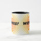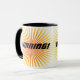 Caneca de vencimento legal e engraçada com starburst amarelo e alaranjado e guarnição preta