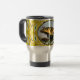 Um teste padrão retro amarelo do caleidoscópio molda uma foto oval de um tigre oriental a borboleta de Swallowtail que com asas espalhou largamente neste ~ da caneca disponível como uma caneca de viagem e um ~ tradicional da caneca de café apenas escolhem seus estilo e tamanho. © poucos fotografia & design da asa