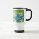 Uma bonito Caneca de viagem não-derramar para personalizar, com um padrão estilo Art Nouveau de lírios do Vale em um fundo azul; da coleção Posh & Painterly 'For the Love of Lily'.