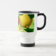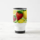 Uma caneca de viagem vibrante com limões, limas e morangos brilhantes em um estilo botânico fresco em um fundo verde suave. Sua paleta alegre e estival adiciona um toque animado aos deslocamentos diários, dias ao ar livre e hidratação cotidiana. Uma escolha elegante para mulheres que amam motivos frutados, louças coloridas e acessórios práticos prontos para presente.