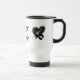 Caracteriza um coração da rocha da zebra, em cada lado com as estrelas cor-de-rosa e pretas no meio no design branco da caneca de viagem criado pelo design do jazz de Paris e pelo Rabecca Primeau