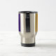 Caneca de viagem de alumínio com código de barras colorido.