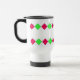 Uma caneca que caracteriza um design cor-de-rosa e verde brilhante do argyle através da parte superior e da parte inferior. Beira e texto cor-de-rosa. Personalize com seu nome. Agrida disponível em uma variedade de cores e estilos, incluindo o viagem e morphing.