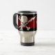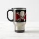 Grog do YER do porto no estilo! a Derramar-prova, caneca de viagem aço-colorida caracteriza o Roger alegre de Razig em um lado, e um aviso severo aos landlubbers no outro.