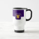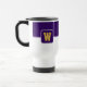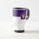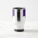 A caneca de viagem de café é mostrada aqui com um impressão de estilo de bloco de cores com uma letra de amostra, personalize e altere as cores e a letra ou comprar como está. Cores Roxo, Branco Personalize este item ou comprar como está.