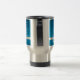 A caneca de viagem indica gráficos azuis bonitos e o verso da bíblia: Assim não tema, porque eu sou com você; não seja desanimado para mim são seu deus. Eu reforçá-lo-ei e ajudá-lo-ei; Eu confirmá-lo-ei com meu righthand íntegro. De Isaiah 41: 10. O verso e o nome da bíblia podem ser personalizados.
