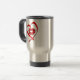 Os lábios vermelhos em um coração esboçam a caneca de viagem de aço inoxidável.
