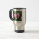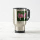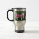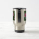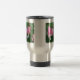 O coração de sangramento cor-de-rosa com gota floresce na caneca de viagem de aço inoxidável da flor.