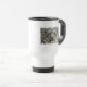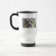 Cara branca do leopardo de neve que é caneca de viagem plástica muito doce.
