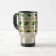 Esta Caneca de viagem de padrão móvel atômico retroativo é o estilo moderno de meio século no seu melhor. A design inspirada na safra apresenta um fundo creme com ovais coloridos pontiagudos em verde-turquesa, laranja, lacrimejo e abacate. Os ovais verdes de chá e abacate se sobrepõem criando uma bela sombra de azul-pavão. Estrelas divertidas acentuam as linhas de entalhe e hetero, que conectam as formas formando um padrão móvel kitschy. Este design de modelo é um excelente emparelhamento com os produtos da StrangeLittleOnion's Retro Grid e Starburst.