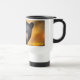 Caneca de viagem branca é mostrada com uma impressão fotográfica de um urso negro selvagem no Parque Nacional Yellowstone. Imagem do stock