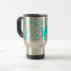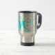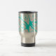 Este copo de café do viagem tem um aqua bonito design do grunge azul e das cinzas do flourish swirly.