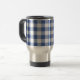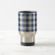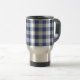 Uma Caneca de viagem muito na moda, em gingham de cheque azul e branco em moda escuro (Mônaco).