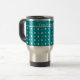 Caneca de viagem de aço inoxidável na moda com bolinhas brancas sobre fundo lacrimogêneo. Você pode personalizar esta caneca com o nome do proprietário ou, em alternativa, deixar a banda superior simples.