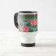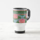 Uma Caneca de viagem não-derramar para personalizar, com 'padrões não combinados' de lírios-d'água cor-de-rosa e lixeiras azuis; da coleção 'Lily Pond' de Posh & Painterly.