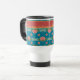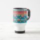 Uma Caneca de viagem não-derramar para personalizar, com 'padrões não combinados' de lírios-d'água cor-de-rosa e lixeiras azuis; da coleção 'Lily Pond' de Posh & Painterly.