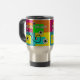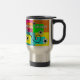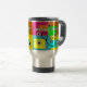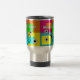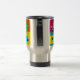 As flores retros caneca de viagem, fundo em cores brilhantes múltiplas com as flores retros preto e branco e estetoscópio do estudante dos cuidados projetam.