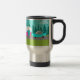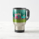 Esta caneca de viagem retro do campista/reboque e do carro caracteriza um meio século moderno, o desenho minimalista dos desenhos animados que sairá de você se apronta para tomar à estrada aberta. Uma homenagem aos anos 50, características deste design um carro de turquesa do vintage com a parte superior branca, puxando um reboque kitschy do viagem para seu destino final. O rv perfeitamente restaurado, retro tem uma metade inferior do rosa quente, uma metade superior branca, e um parafuso de relâmpago de turquesa que separa os dois. A porta no lado do campista é igualmente turquesa. O acento final é a asa do rosa quente que projeta-se da parte de trás desta casa nas rodas. Os campistas felizes estão viajando de automóvel abaixo de uma estrada cinzenta. A estrada é cercada pela luxúria, grama verde. No fundo, nós podemos ver as silhuetas da cerceta de uma floresta verídico de árvores de cedro, contra um céu do aqua com inchado, luz - nuvens azuis. Este design é perfeito para todos dos hippys, dos hipsteres do principiante, ou de qualquer um aposentado que quer relive algumas grandes memórias da infância. A melhor parte é que ninguém está pedindo, "é nós lá ainda?"