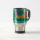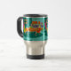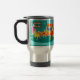 Esta caneca de viagem semanal do jogo de cartas das mulheres retros caracteriza um desenho dos desenhos animados de quatro mulheres modernas do meio século em um partido de galinha. Estão socializando em uma sala de jantar à moda. Em uma parede de tijolo de turquesa e de cerceta, há uma arte moderna do globo do meio século impressão esticado das canvas disponível da loja do Zazzle de StrangeLittleOnion. Meu, têm o bom gosto! Através das portas de vidro de deslizamento, nós podemos ver a luxúria, gramados verdes do subúrbio. Através da rua, há uma casa alaranjada lustrosa com um carro cor-de-rosa e branco estacionado no carport. Para trás na sala de jantar, três mulheres são assentadas em uma mesa redonda com um tablecloth alaranjado. Há um redhead em um vestido amarelo, em um brunette em um vestido verde, e em um louro em um vestido vermelho. Estão guardarando cartões em suas mãos. Quatro teacups estão na mesa apenas que espera para ser enchido pela hospedeira de cabelo do corvo em um vestido cor-de-rosa do wiggle. Está levando uma bandeja com um carafe do chá empoleirado sobre ele. Todas as mulheres estão tendo uma estadia maravilhosa, mas devem provavelmente manter um olho no louro. Se esse cartão que está guardarando atrás dela é para trás toda a indicação, ela se engana!
