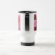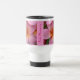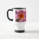 Um plumeria cor-de-rosa, flor havaiana perfumada encontrada frequentemente no leus, decora esta caneca, junto com as palavras, "Plumeria cor-de-rosa." Esta flor tropical é sabida igualmente como o frangipani.