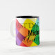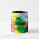 caneca de café projetada pela HAMbyWhiteGlove aka HAMbyWG com um fundo gráfico colorido, as palavras "Melhor Pai de Todos" (ou o que você escolher!) e um modelo para o nome do pai. Basta escolher a opção personalizar.